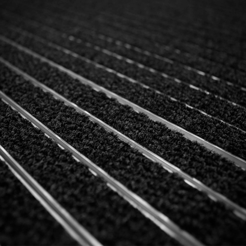 Fabricado com módulos de alumínio, borracha e polipropileno de alta resistência, ele forma uma barreira eficiente contra sujeira e líquidos, garantindo segurança, conservação e estética sem perder a sofisticação do ambiente.